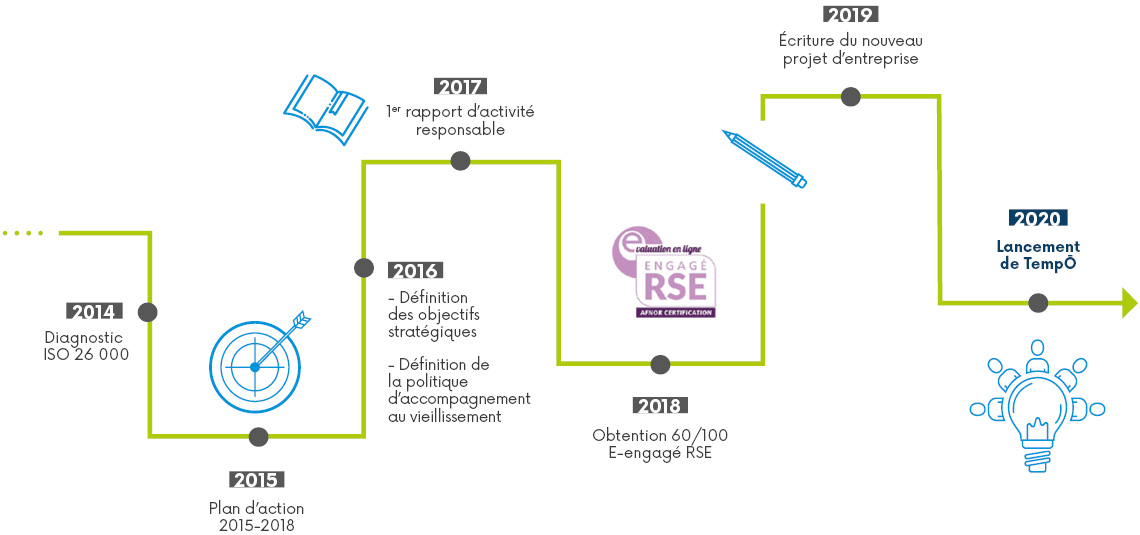 Depuis la mise en place de la démarche RSE en 2014, de nombreuses actions ont pu voir le jour : l’évaluation de l’empreinte carbone de son activité avec le bilan carbone réalisé tous les 3 ans, la mise en place d’un plan de mobilité en concertation avec les collaborateurs, le soutien au réemploi des matériaux ou aux matériaux biosourcés dans les différentes opérations, l’adaptation du parc immobilier au vieillissement de la population, le renforcement des actions de développement social à destination de nos locataires, etc.